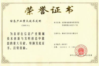 公司自主研發(fā)的廢舊冰箱無(wú)害化處理及資源回收技術(shù)及設(shè)備, 具有“雙軸斯碎機(jī)+立式破碎機(jī)+大風(fēng)是稀釋環(huán)成烷氣體”技術(shù), 主要用于對(duì)廢舊冰箱中的各種原材料進(jìn)行分離、 回收和利用, 具有自主知識(shí)產(chǎn)權(quán),經(jīng)國(guó)家工業(yè)和信息化部科技成果鑒定為 “填補(bǔ)國(guó)內(nèi)空白, 達(dá)到國(guó)際先進(jìn)水平” 。(鑒定資料詳見工信鑒字【2010】第07001號(hào))
