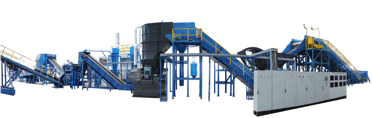 待處理的報(bào)廢汽車采用專業(yè)預(yù)處理設(shè)備將留存在車內(nèi)的燃料、機(jī)油等各類液體分類回收后,再拆除各種總成等零部件。余下的報(bào)廢汽車車身通過上料裝置投入到整機(jī)破碎設(shè)備將車身粗碎到長(zhǎng)條塊狀,再進(jìn)入立式破碎搓揉與旋風(fēng)分離一體化設(shè)備內(nèi)進(jìn)行粉碎,將車身上相互粘連的鋼鐵、銅鋁、塑膠、化纖、皮革及泡沫等物料進(jìn)行充分解離,再經(jīng)后續(xù)磁選、渦電流分選、二次分選、專用篩分系統(tǒng)分選后,將其分類回收。
