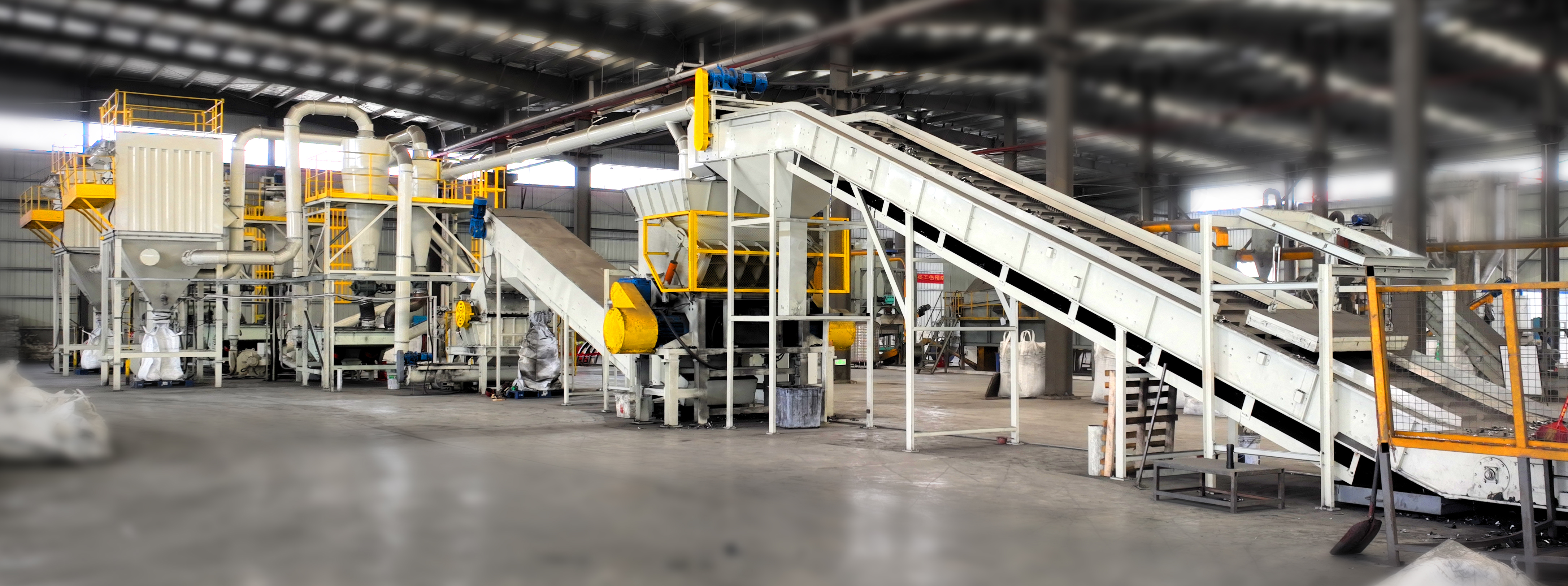 由渦流粉碎機(jī)、分級機(jī)、旋風(fēng)分離器、脈沖除塵高壓風(fēng)機(jī)、管路平臺等組成,具備粉碎剝離、氣流分極兩大核心功能,能將極片中黑粉和鋁/銅箔進(jìn)行粉碎、高效剝離、精細(xì)氣流分選,避免極片破碎過程中銅、鋁的過度破碎,可得到普純極粉(極粉鋁含量低于3000 ppm)及高純極粉(鋁含量小于300 ppm)兩種規(guī)格,普純極粉品質(zhì)優(yōu)于市面,降低后續(xù)濕法冶煉成本,高純極粉純度有保障,可直接作為物理修復(fù)原料使用。